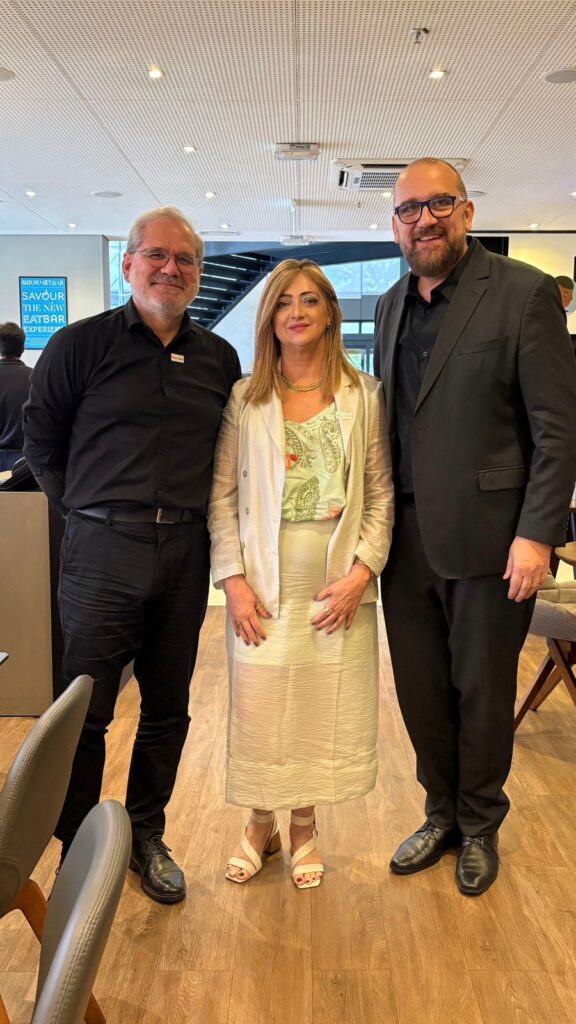 Na ocasião, Marcia Romano encontrou diversos parceiros e expositores da Flexo & Labels Expo 2026, que acontecerá de 26 a 29 de maio no Distrito Anhembi, em São Paulo. Entre eles, Ronnie Schröter, CEO da Etirama e anfitrião do evento, Rodrigo Narvaez (Maxcess Brasil), Orlando Esteves e Eduardo Livolis (Pack Trade), Pablo Baldizzoni (W do Brasil), Jefferson Marquesini Gastadelo (JMG), Tobias Meyer (Crown do Brasil), e Freddy Johann (Evolutech).